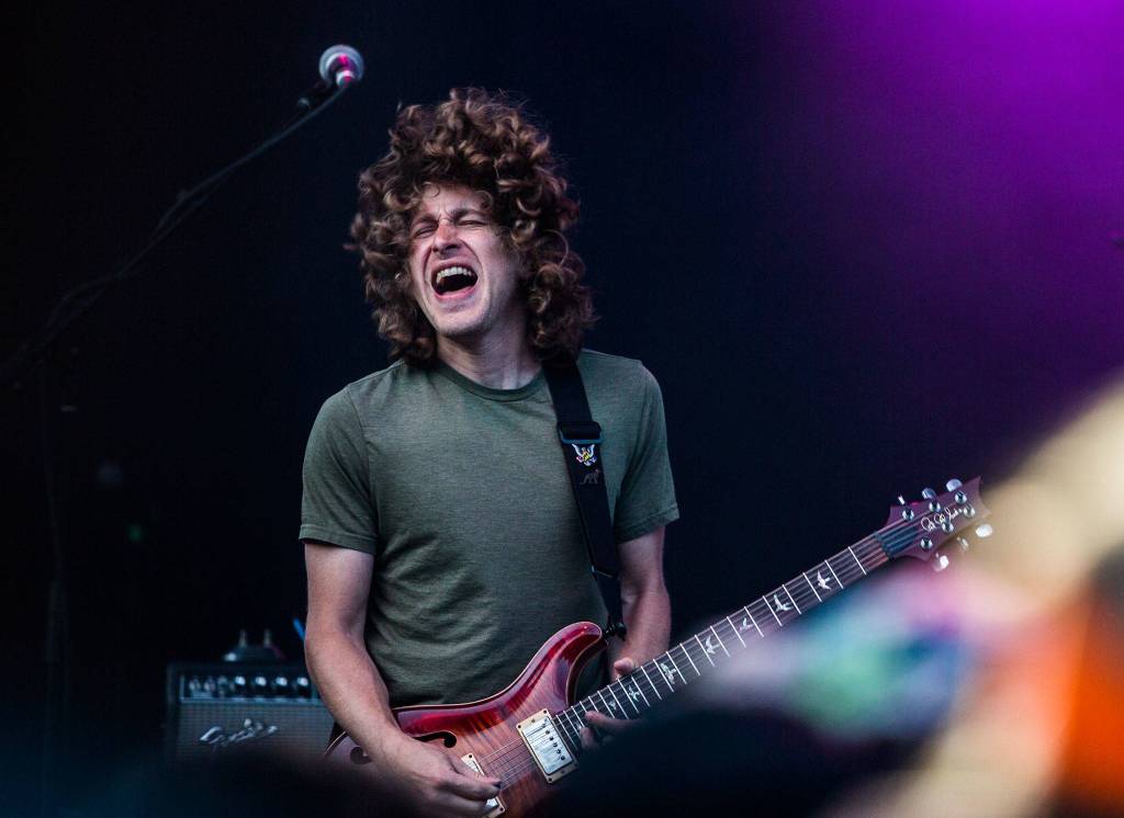 Pigeons Playing Ping Pong’s guitarist and vocalist Jeremy Schon plays during the first day of Summer Meltdown on Thursday, Aug. 1, 2019 in Darrington, Wash. (Olivia Vanni / The Herald)