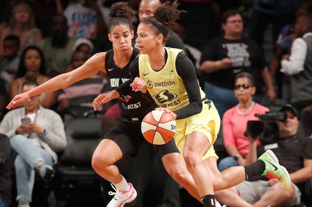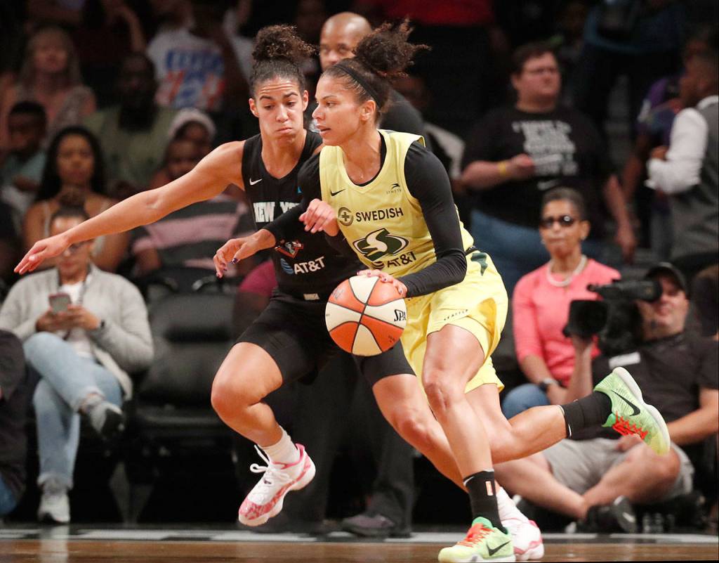TRAINING ROOM: The Liberty were missing starting forward Amanda Zahui B. who is sidelined with a concussion. She’s in concussion protocol right now according to coach Katie Smith. New York was also missing Asia Durr, who re-injured her groin in practice this week. … Seattle was still missing guard Sue Bird, who had surgery on her knee in May. Bird was in attendance sitting on the bench, one of the rare times she’s traveled on the road with the Storm this season. Bird is from New York and had a few friends and family at the game.
