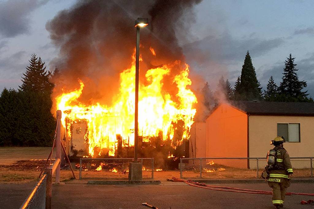 MARYSVILLE — A fire that destroyed a portable building at Marysville’s Cedarcrest Middle School earlier this month was arson, the Snohomish County Fire Marshal has determined.