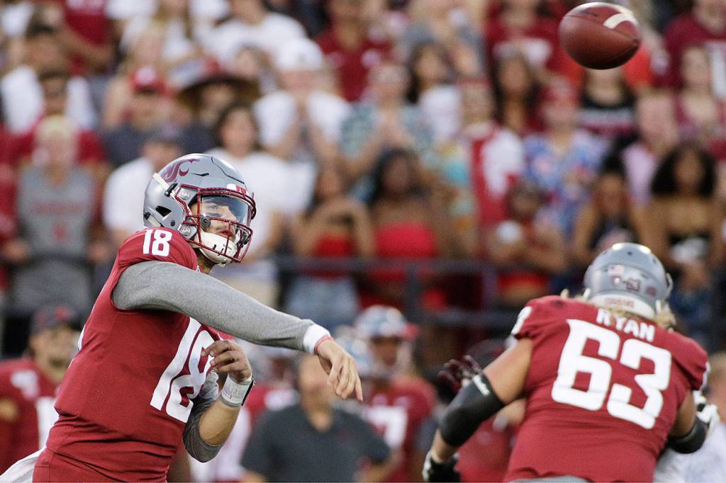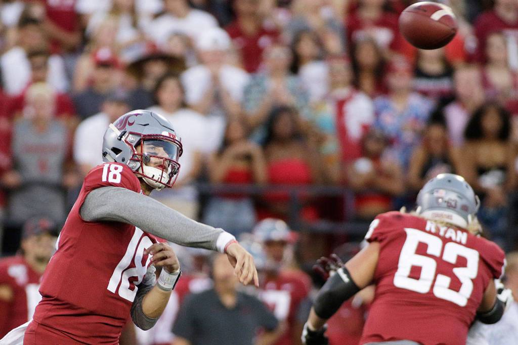 Washington State quarterback Anthony Gordon (18) throws a pass during the first half of a game against New Mexico State on Aug. 31, 2019, in Pullman. (AP Photo/Young Kwak)                                Washington State quarterback Anthony Gordon (18) throws a pass during the first half of the team’s NCAA college football game against New Mexico State in Pullman, Wash., Saturday, Aug. 31, 2019. (AP Photo/Young Kwak)