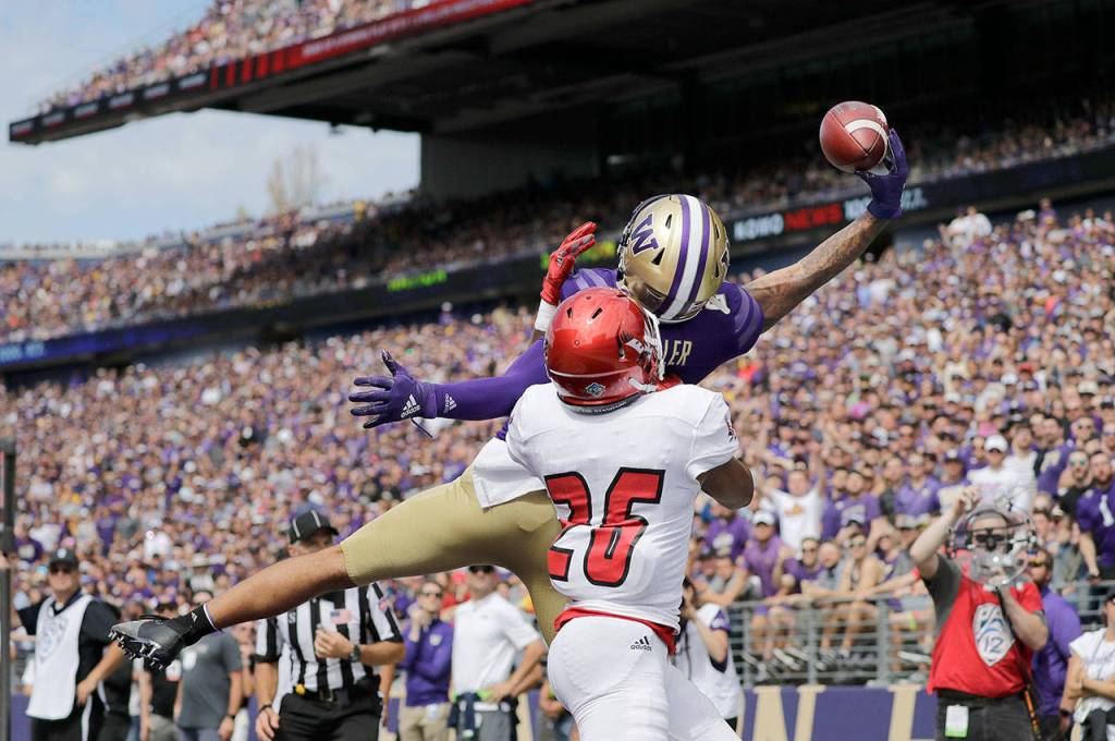 SEATTLE — The first touchdown scored by the University of Washington football team during the Jacob Eason Era happened when Eason wasn’t even behind center, but rather when the Huskies’ new starting quarterback was split out wide as the Dawgs lined up in the wildcat formation.