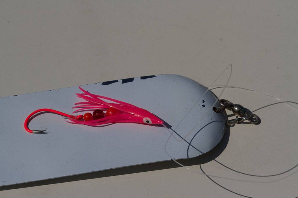 The most popular rig is a pink squid fished about 20 inches behind a white dodger. If you hit a fish, continue to work that area carefully because you are likely around a group of Humpies.