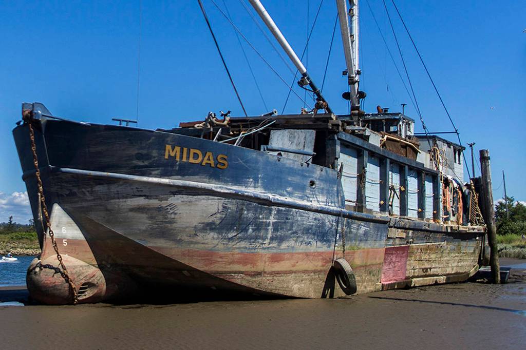 In the Snohomish River, the Midas, a 100-foot World War II-era fishing boat, has sat sunk since June 2018. The DNR seized the vessel Aug. 14.