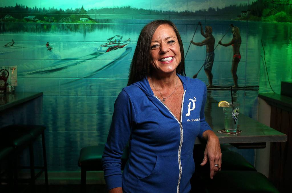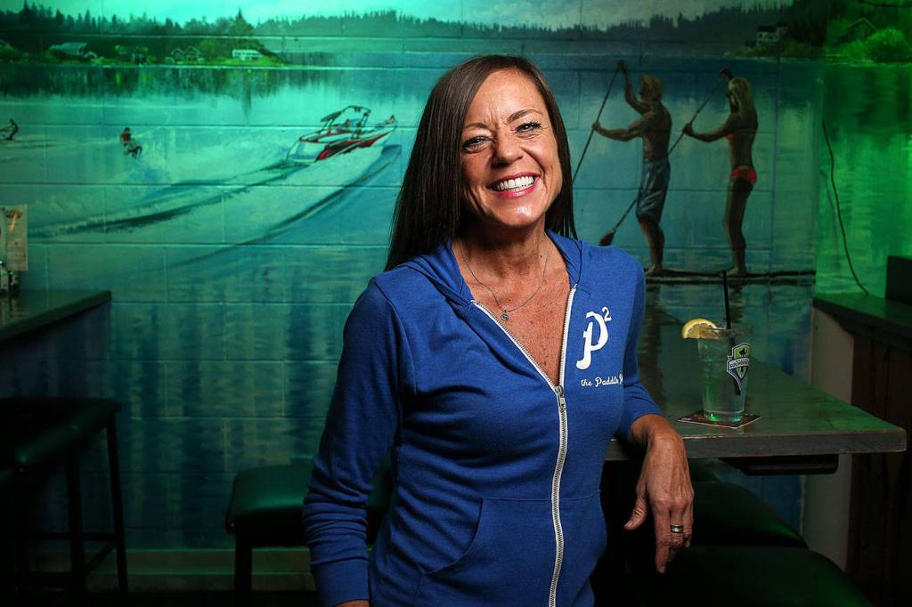 Deanna VanderVate, 48, is a bartender at The Paddle Pub in Stanwood. She calls it her second home. (Andy Bronson / The Herald)