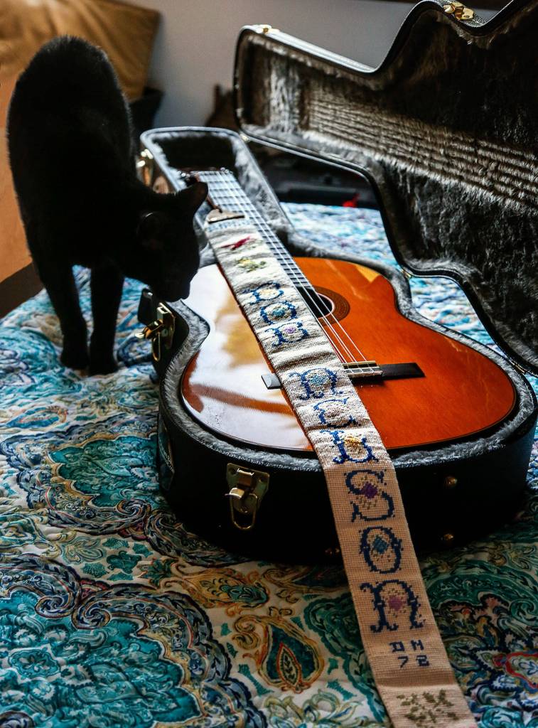 Six decades later, Nelson and his wife, Judy, recently moved from their cozy Everett home into Sunrise View. It’s where Bob Nelson’s parents, Tek and Dorothy Nelson, spent the last years of their lives. Nelson’s guitar strap — with his name in needlepoint — was crafted by his mother.