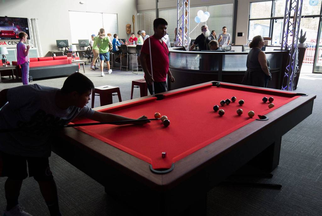 Middle and high schoolers are welcome to use the space. Inside are rows of computers, table games, big couches and a snack counter.