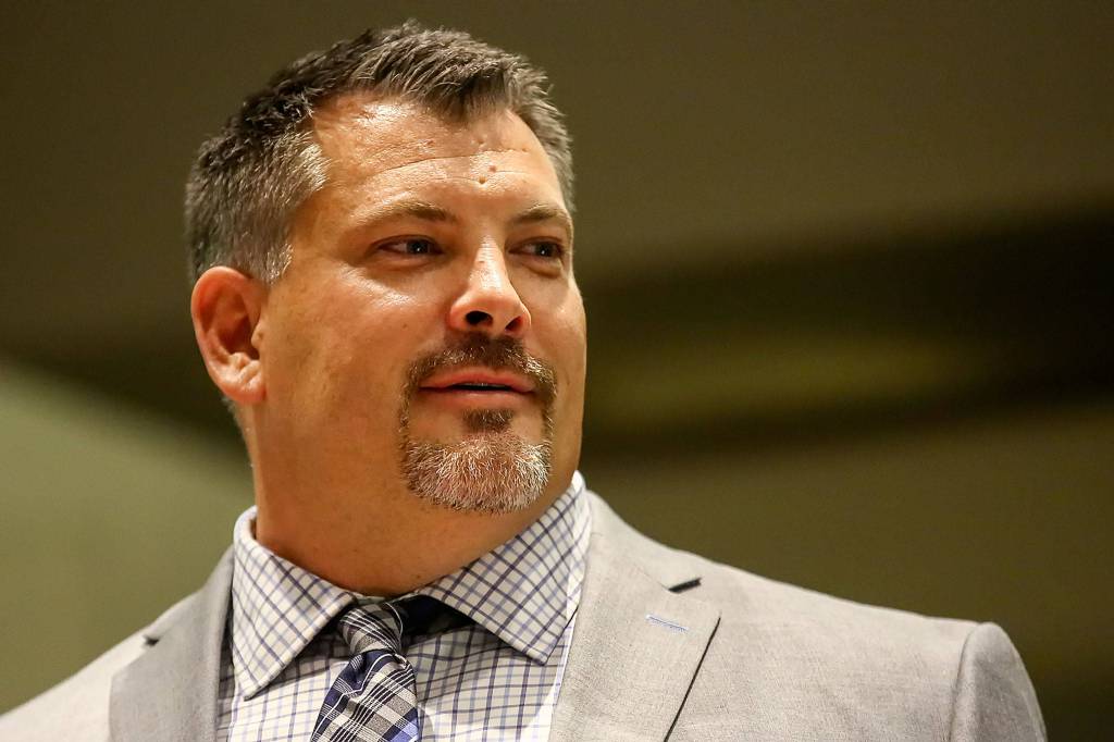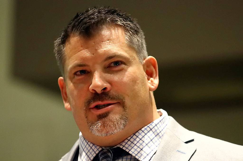 Jarred Rome was one of nine inductees in the 10th Annual Snohomish County Sports Hall of Fame Banquet on Sept. 18 at Angel of the Winds Arena in Everett. In his acceptance speech, he said, “The two things I learned in my life you need to have to have success are failure — that’s No. 1 — and support.” (Kevin Clark / The Herald)