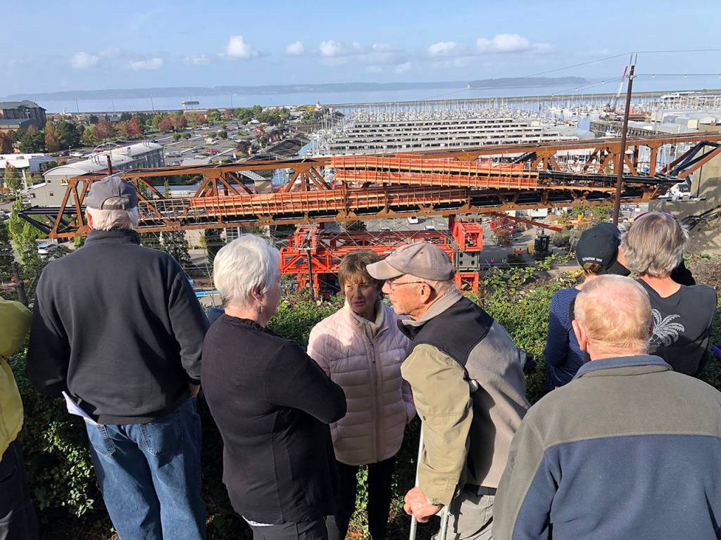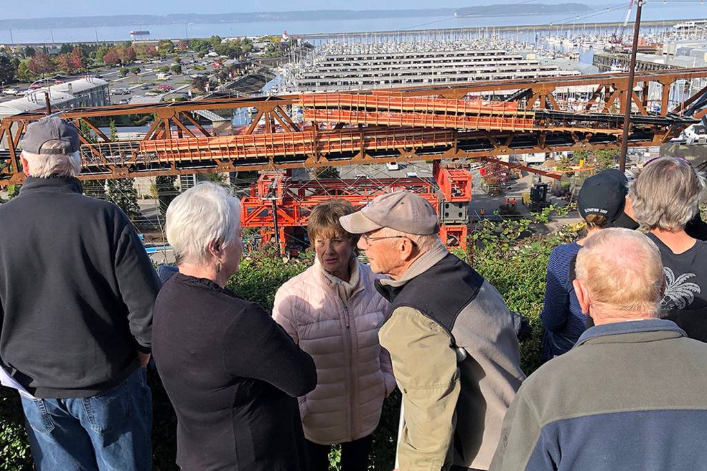 Lots of folks came out to watch the Grand Ave. Bridge on Wednesday morning. (Sue Misao / The Herald)