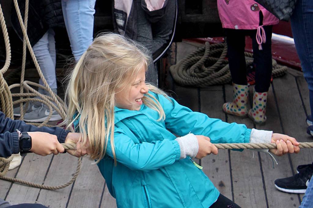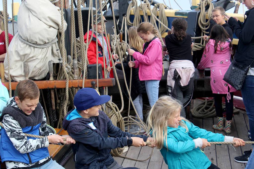 On the bow, boys and girls wrinkled up their noses at the smell of pig snouts and other sailor grub while learning how their ancestors survived on extended journeys. Sea shanties and stories ended the day’s work in much the same way sailors of old passed time on the high seas.