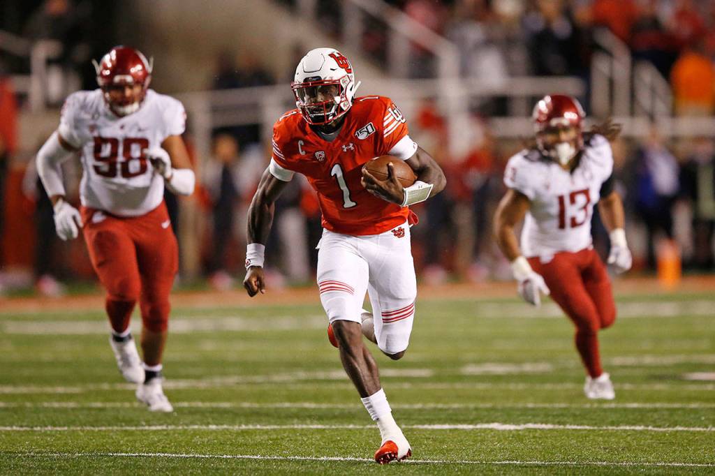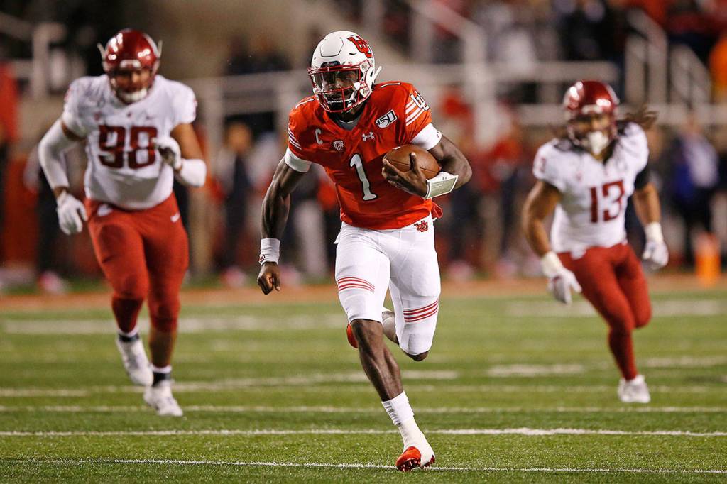 SALT LAKE CITY — Tyler Huntley passed for two touchdowns and ran for two more, powering No. 19 Utah over Washington State 38-13 in the rain on Saturday night.