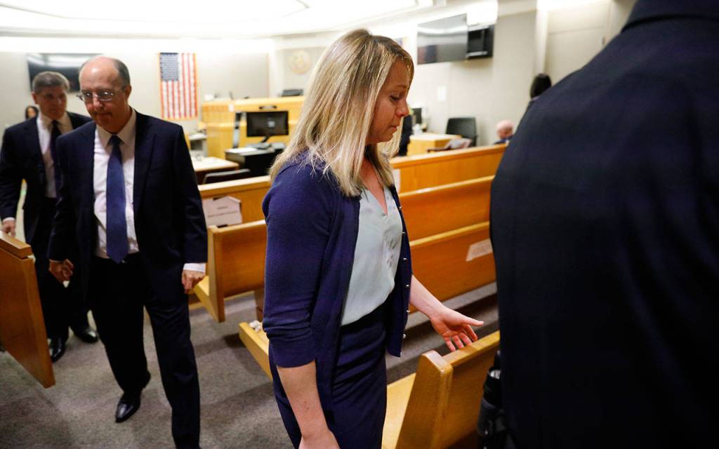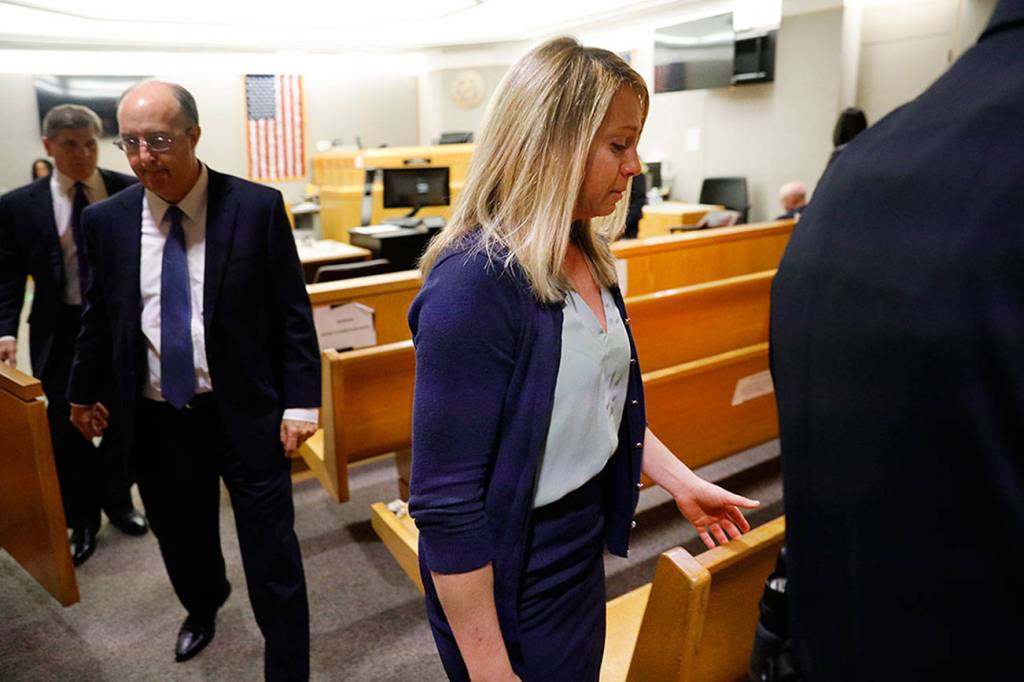 Fired Dallas police officer Amber Guyger leaves the courtroom after a jury found her guilty of murder Tuesday in Dallas. Guyger shot and killed Botham Jean, an unarmed 26-year-old neighbor in his own apartment last year. She told police she thought his apartment was her own and that he was an intruder. (Tom Fox/The Dallas Morning News via AP, Pool)
