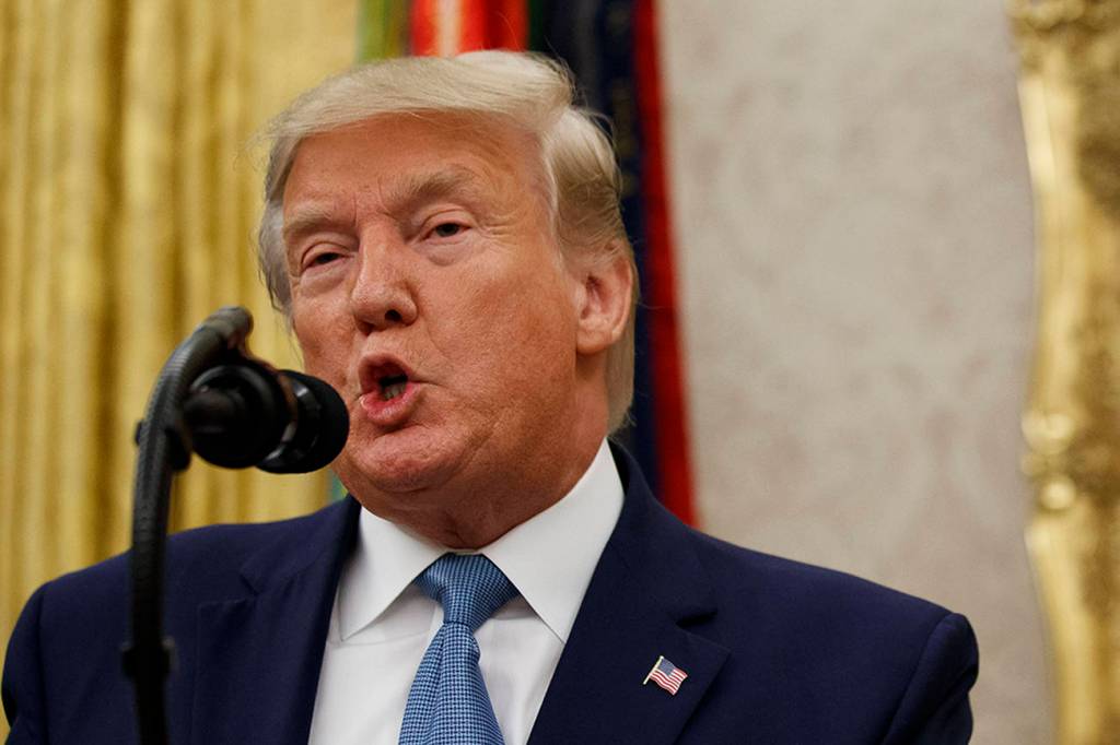 President Donald Trump speaks during a ceremony to present the Presidential Medal of Freedom to former Attorney General Edwin Meese, in the Oval Office of the White House on Tuesday. (AP Photo/Alex Brandon)