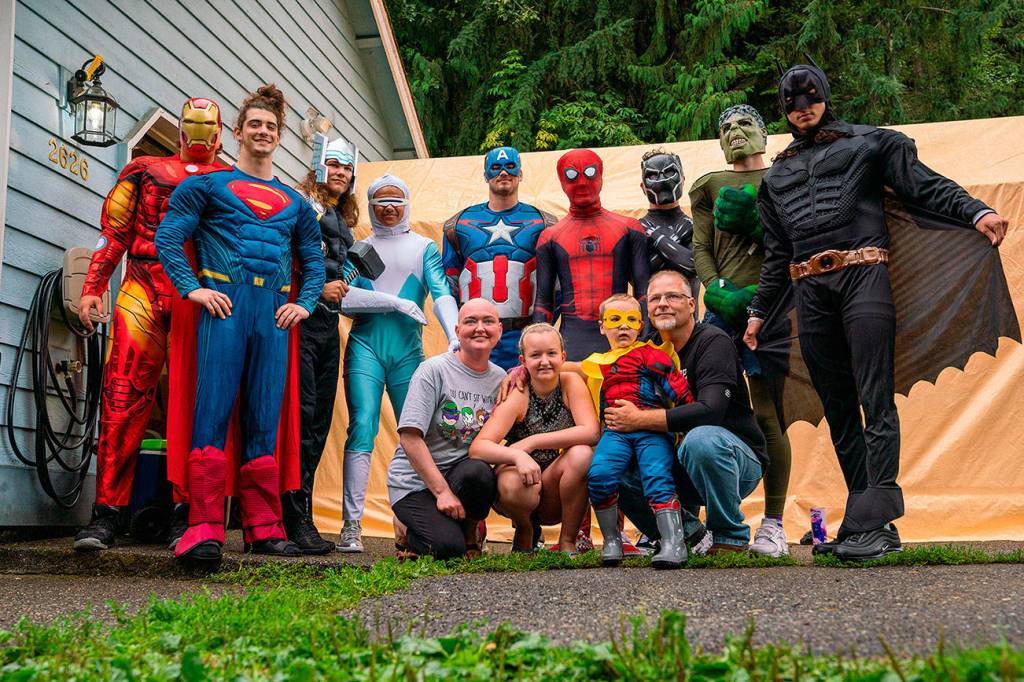 Sure enough, a whole pack of superheroes assembled the following afternoon in Lake Stevens. They rode to the party in Lussier’s truck, then piled out onto the driveway in front of the overjoyed birthday boy.