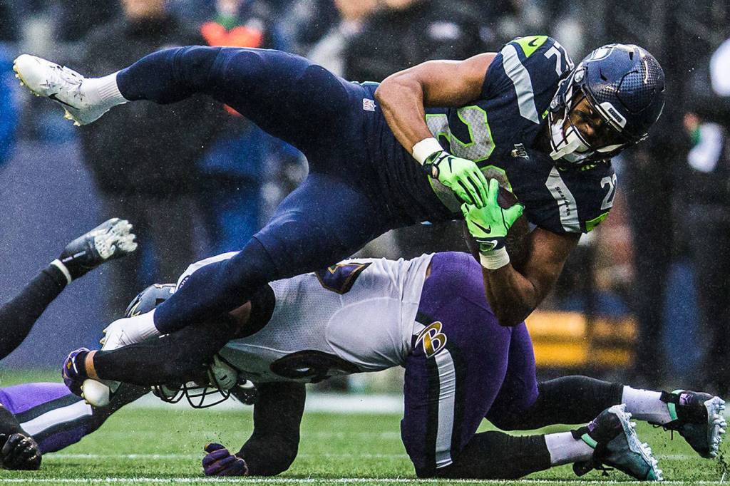 Seattle’s offense also found success during the first two quarters, routinely putting together promising drives. But Baltimore yielded just three second-half points and leaned on Jackson’s legs to spark its second-half offense.