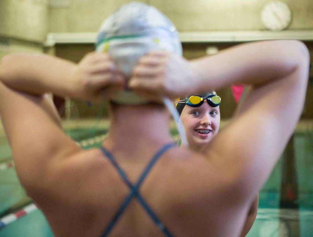 And then there are South Whidbey’s swimmers, who for the past five seasons have been part of a co-op program with Kamiak. Their commute to and from practice involves a combination of riding a ferry, catching a bus and walking the remaining few blocks to Kamiak — and then doing the reverse on their way back home. This year, there are a record six South Whidbey swimmers in the program.