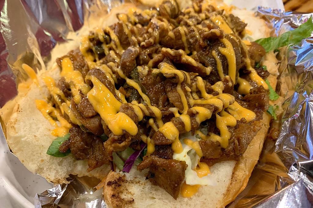 It’s one of three fusion sandwiches on the menu. You can also order the bulgogi or crispy chicken katsu sub for $9 each.