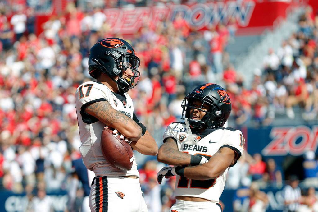 Jermar Jefferson, last season’s Pac-12 Freshman of the Year, has been dealing with an ankle injury, but returned against the Wildcats and rushed for 105 yards and three touchdowns. Together with Artavis Pierce, who rushed for 114 yards and a score, the Beavers pose a threat on the ground.