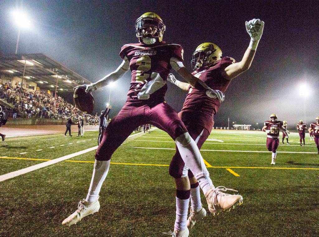 Quarterback Jared Taylor connected with wide receiver Carson Chrisman for three touchdowns, Lakewood’s defense made four stops on fourth down and the Cougars are heading to the state quarterfinals for the first time since 2011 after a 38-12 victory over Sequim in a first-round Class 2A state playoff game Friday night at Lakewood High School.