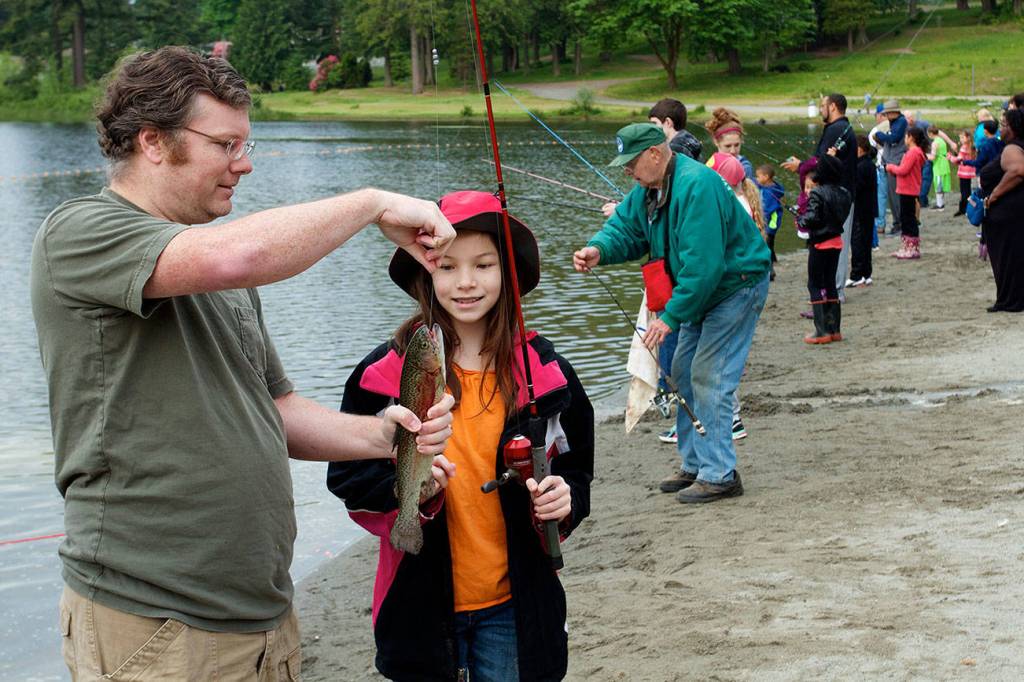 Silver Lake (11405 Silver Lake Road, Everett) — The 99-acre lake is a popular fishing location for kids and home to the Everett Salmon and Steelhead Club’s Kid’s Fish-in each spring. There is no public boat launch, but you can easily launch a small boat along the southeast corner of the lake. There is also a fair amount of shoreline access to the lake, but a small boat will help to find the fish.
