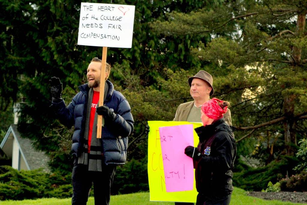 A group of about 20 faculty members stood on the corner of 196th Street and 68th Avenue and picketed Tuesday morning, calling on college administrators to meet their demands for higher salaries.