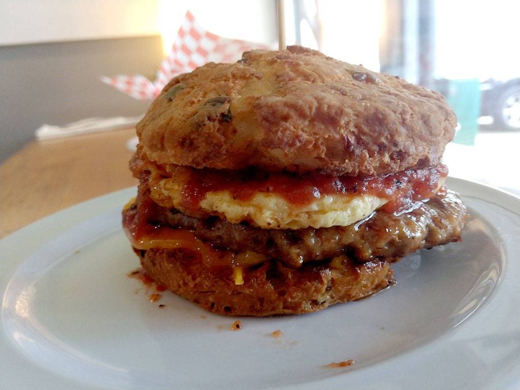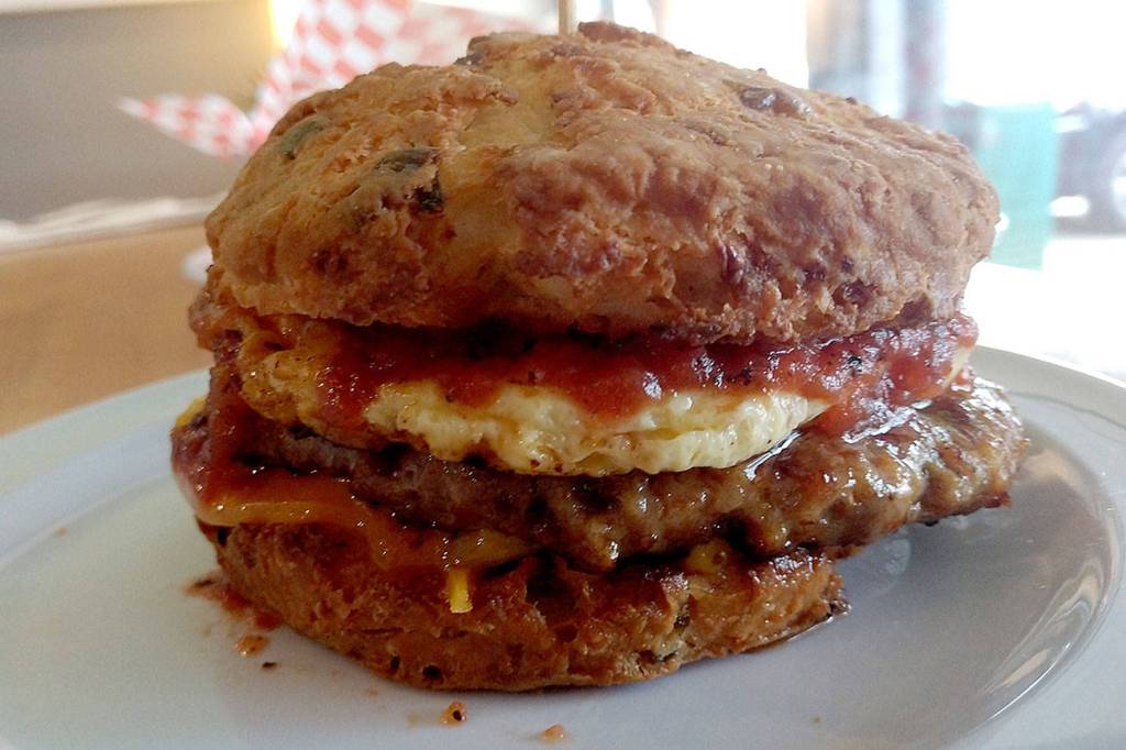 The exquisitely cloudlike biscuit and the high-quality fixings — especially the tomato jam — banished my bad memories of the desiccated biscuit breakfast sandwiches churned out by fast-food franchises. And the biscuits and gravy was nothing like the ghastly gray glop that turned me off that dish after several regrettable encounters over the years.