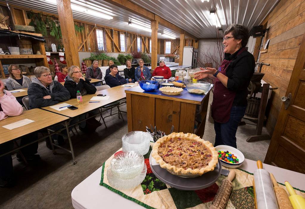 Fuentes baked the pie at a recent cooking demonstration . With its hazelnuts and cranberries that float to the top, she said it’s a pretty pie that would be a special treat at Christmastime.