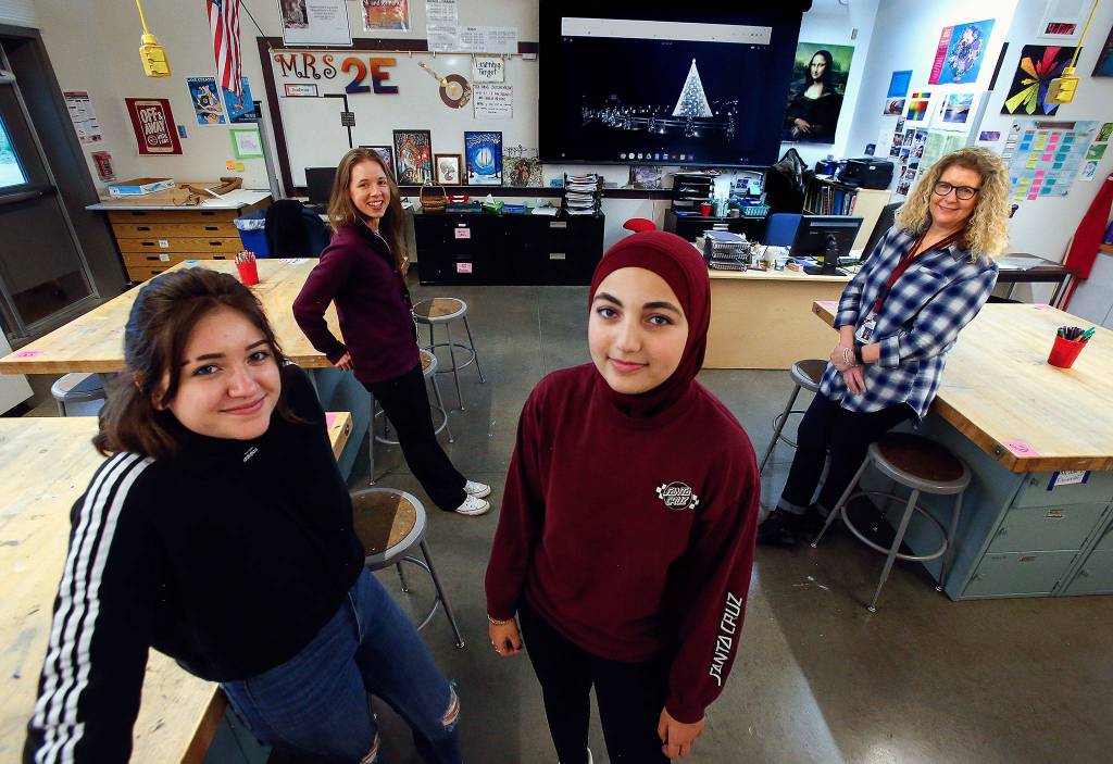 At Cavelero Mid High, 230 students created art for the project, but just 48 paintings were chosen for the display in the nation’s capital. The other art hasn’t gone unnoticed. Those pictures are on display at the Schack Art Center in Everett, Towey said.