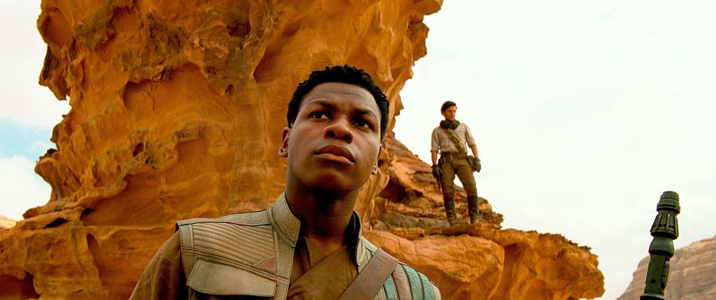 Lightsaber duels and spaceship flotillas ensue. The movie’s got some surprises that are not terribly surprising — but they certainly qualify as “fan service” to the devoted faithful.