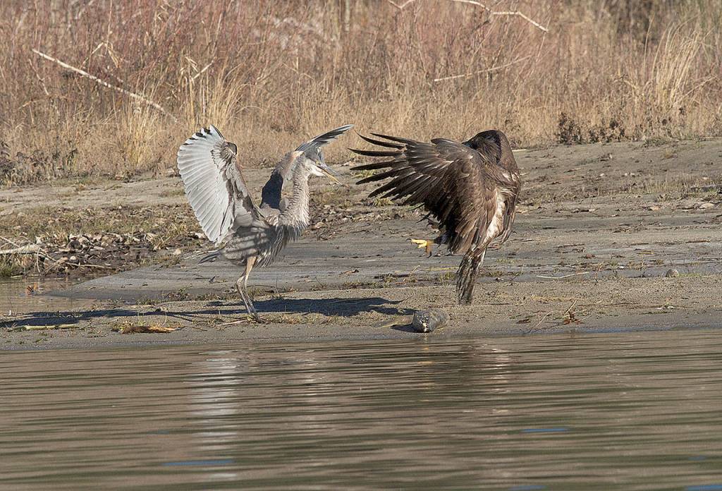 He added customers also enjoyed photographing a great blue heron that frequently squabbled over salmon carcasses with the eagles.