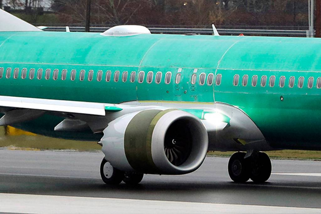 In this Dec. 11, 2019 photo, a Boeing 737 Max taxis for a test flight at Renton Municipal Airport in Renton. (AP Photo/Ted S. Warren, File)