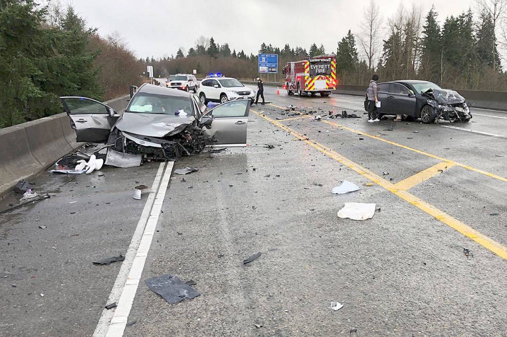 A Snohomish teenager behind them struck their car’s driver’s-side front end. A third driver from Snohomish rear-ended the teen’s sedan.