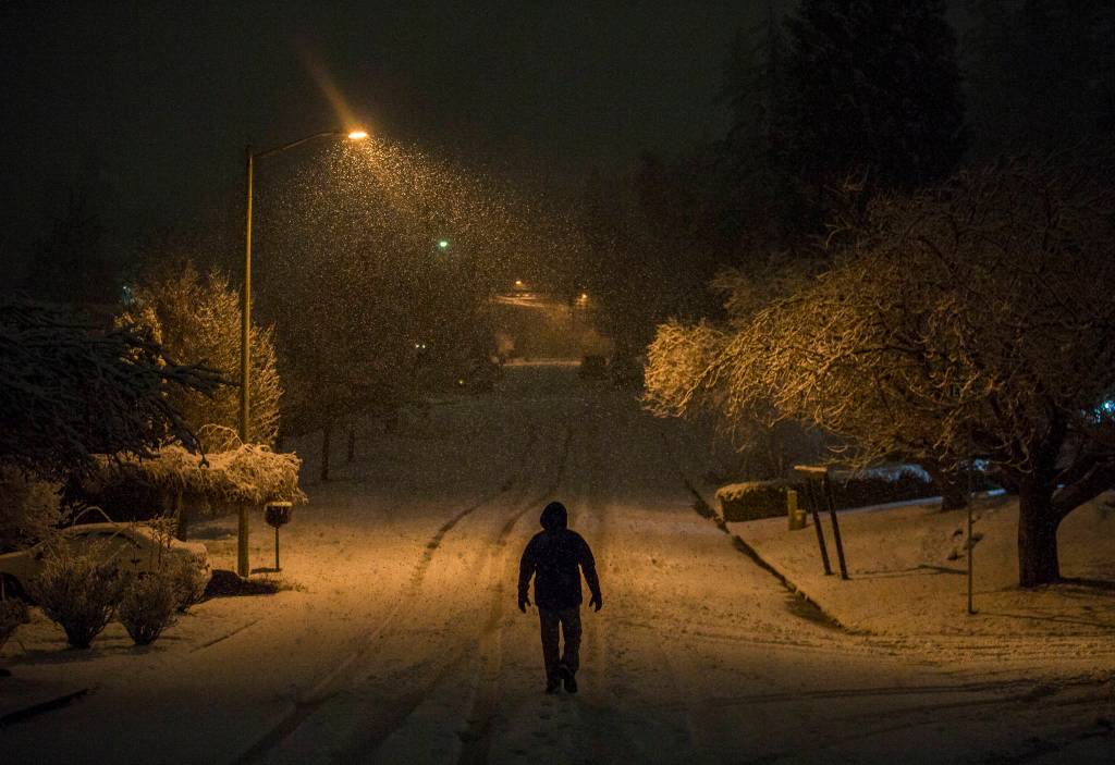 Snow hits Snohomish County, and it’s going to stay cold