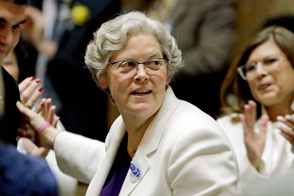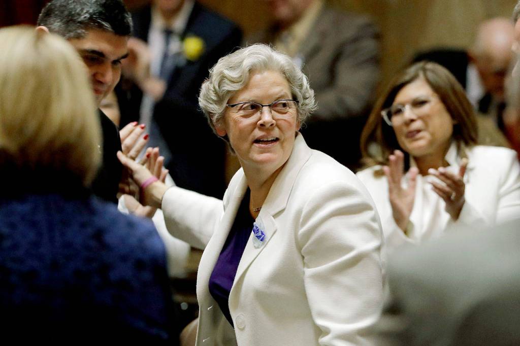 “We are all witnessing history today,” said Rep. John Lovick, D-Mill Creek, who served as acting speaker ahead of the session. “Another barrier falls as the first woman in Washington state will stand on this spot and hold this gavel as Speaker of the House.”