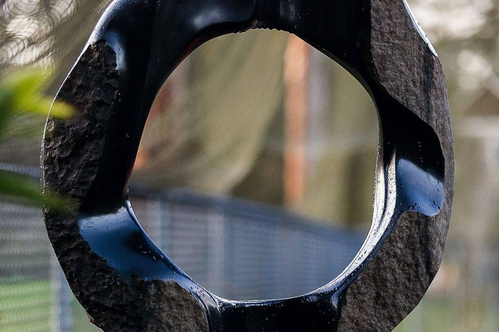 Winter isn’t high season for visiting the arboretum in Everett’s American Legion Memorial Park, but a stroll past the gazebo there offers a look at a bold circular piece titled “Equatorial Equinox #5.” Created by Oregon artist Dave Haslett, it was installed in June.