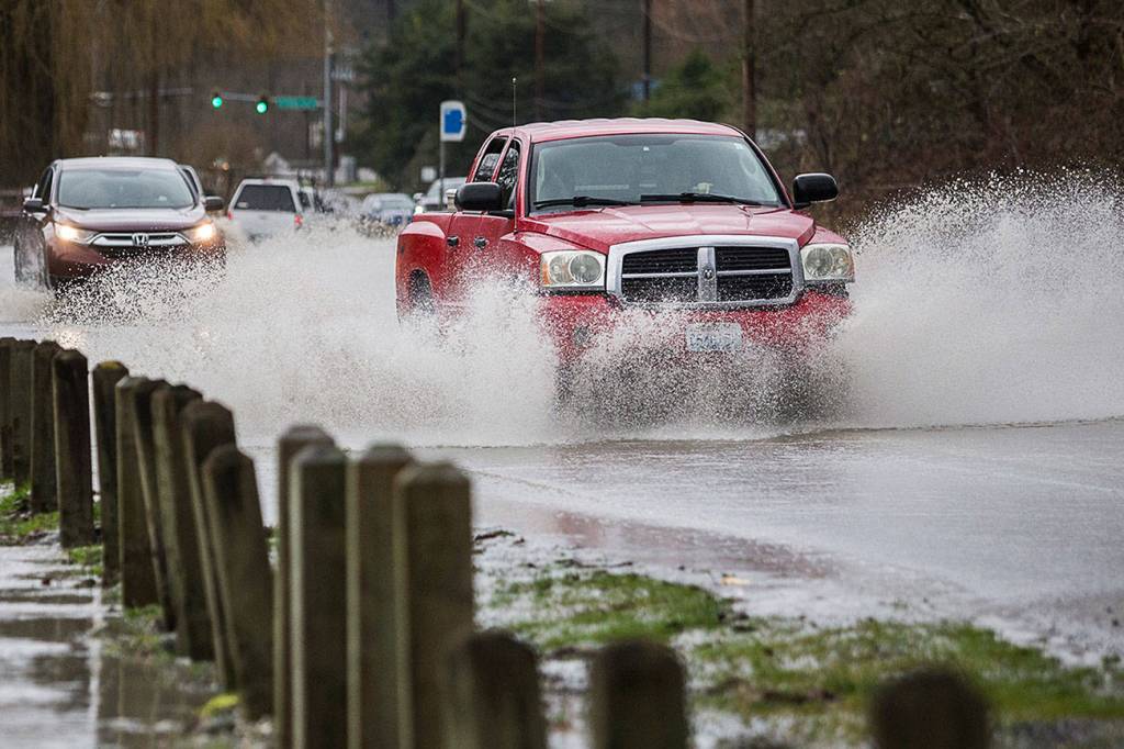 Last week, 1.52 inches of rain fell in Snohomish alone, according to Washington State University’s AgWeatherNet. The United States Geological Survey’s gauge on the Snohomish River near Monroe measured the water at just above 6 feet early Friday. The gage height surged to 15 feet by the end of the day, topped out at more than 18 feet Saturday, and dropped to 16 feet Sunday.