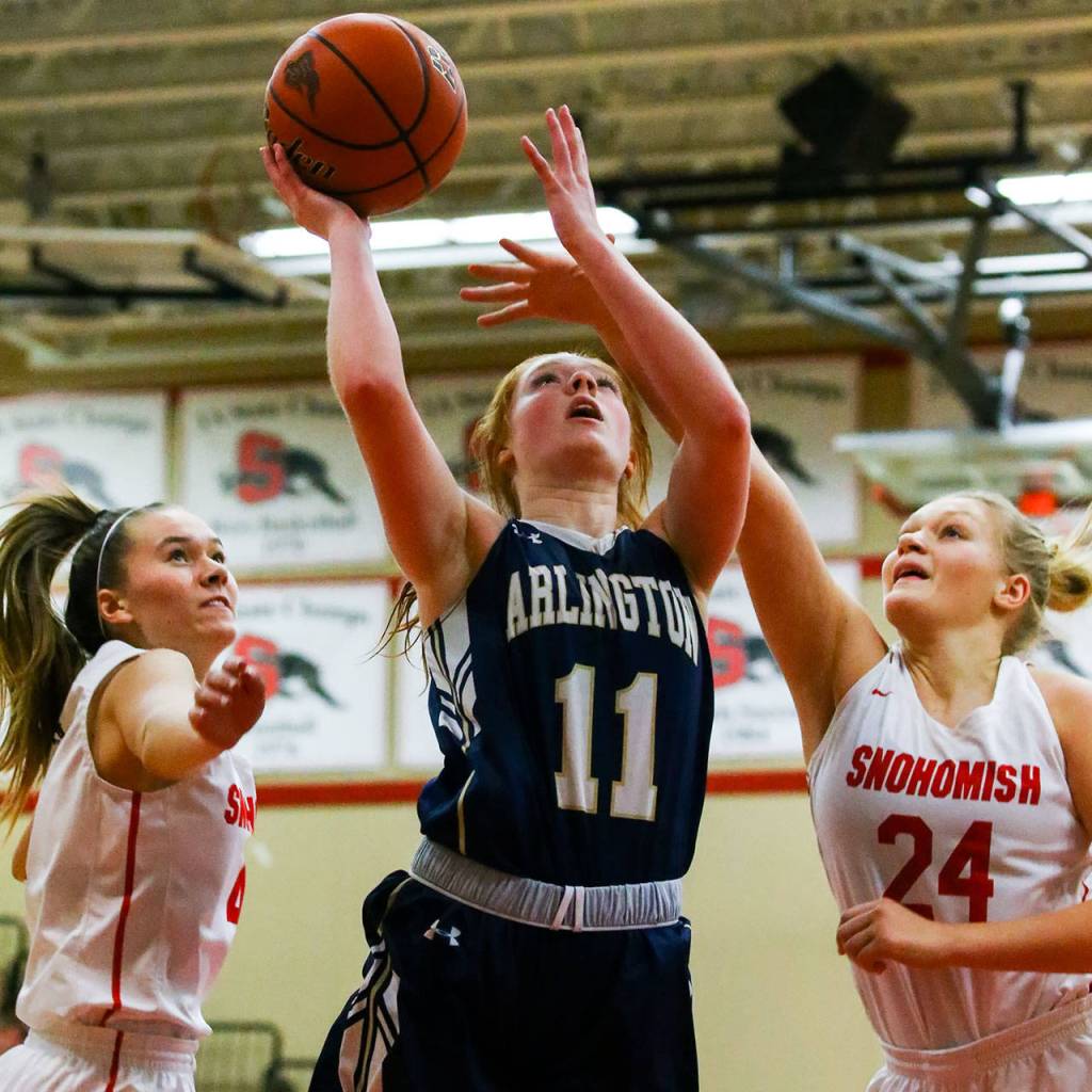 Snohomish trimmed the margin to seven points in the fourth quarter. But Arlington senior Sierra Scheppele provided the dagger, hitting a 3-pointer to make it 43-33 with 2:06 to play.