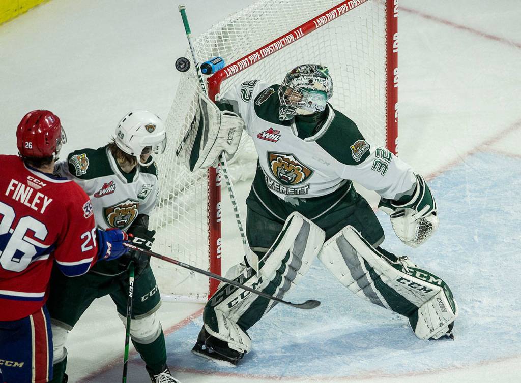 Aside from five-plus minutes on Saturday and being pulled for an extra skater on late in the game on Sunday, Everett Silvertips goaltender Dustin Wolf started in between the pipes for every second of the Silvertips’ recent three-in-three stretch over the weekend.