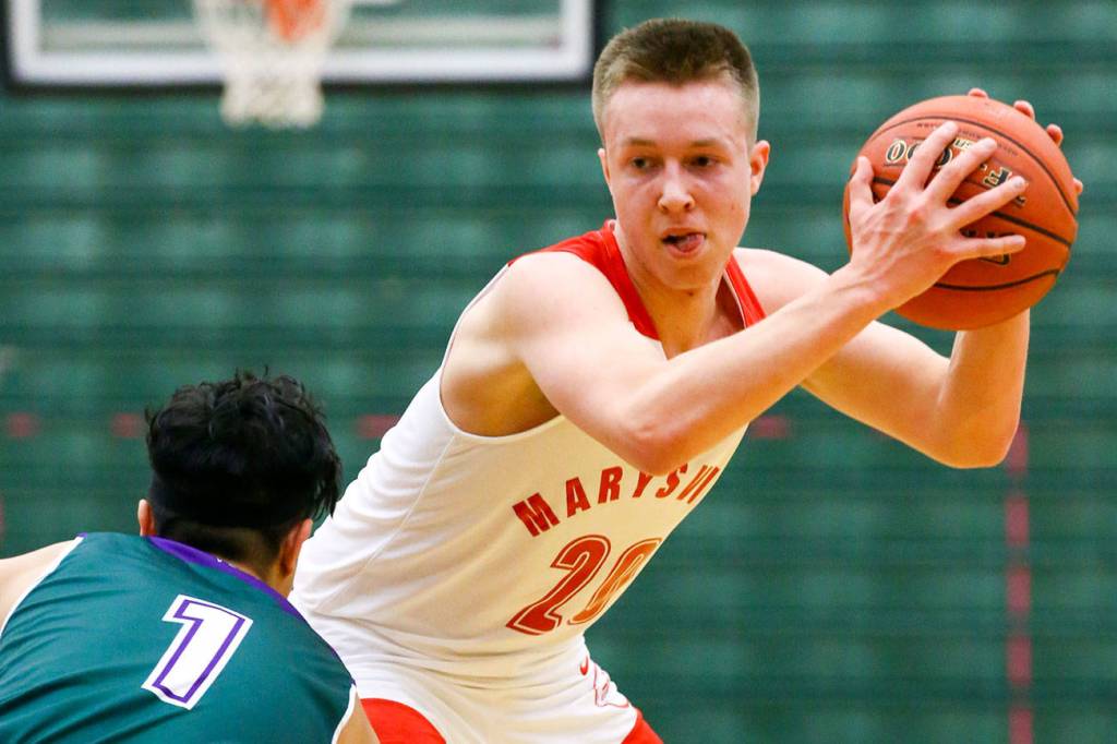 Marysville Pilchuck then quickly pushed the ball upcourt and worked it inside to Ethan Jackson, who passed it back out to Dobler on the left wing.