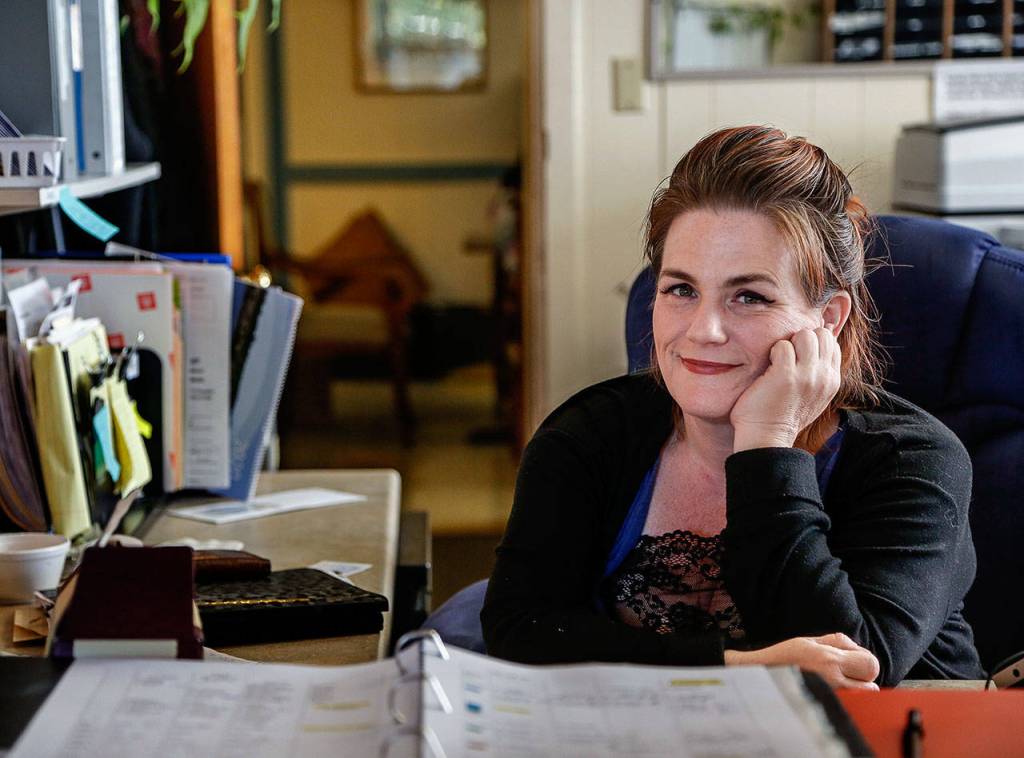 Shelly Dana holds down the front desk at Delta Rehabilitation Center, a Snohomish care facility expected to close this year.