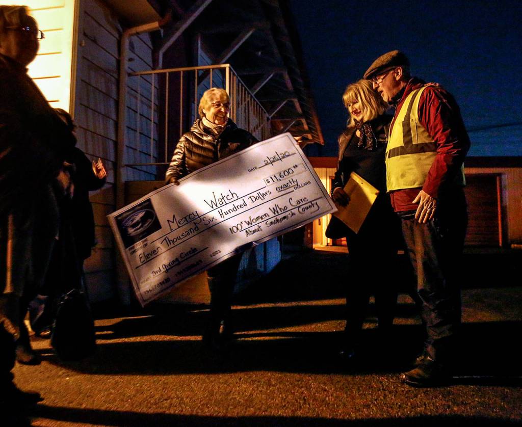 “So far, we’ve given $33,125,” Bacon said after presenting the Mercy Watch donation. The other recipients of more than $10,000 each were Homage senior services, for its Minor Home Repair program, and Faith Food Bank and Community Meal in Everett.