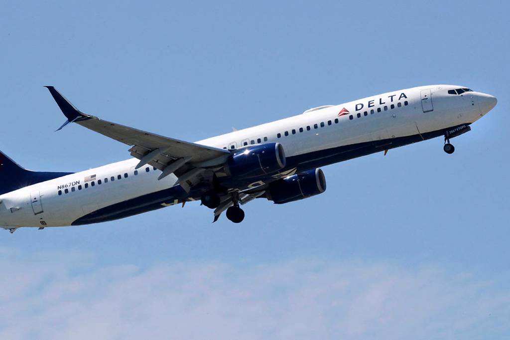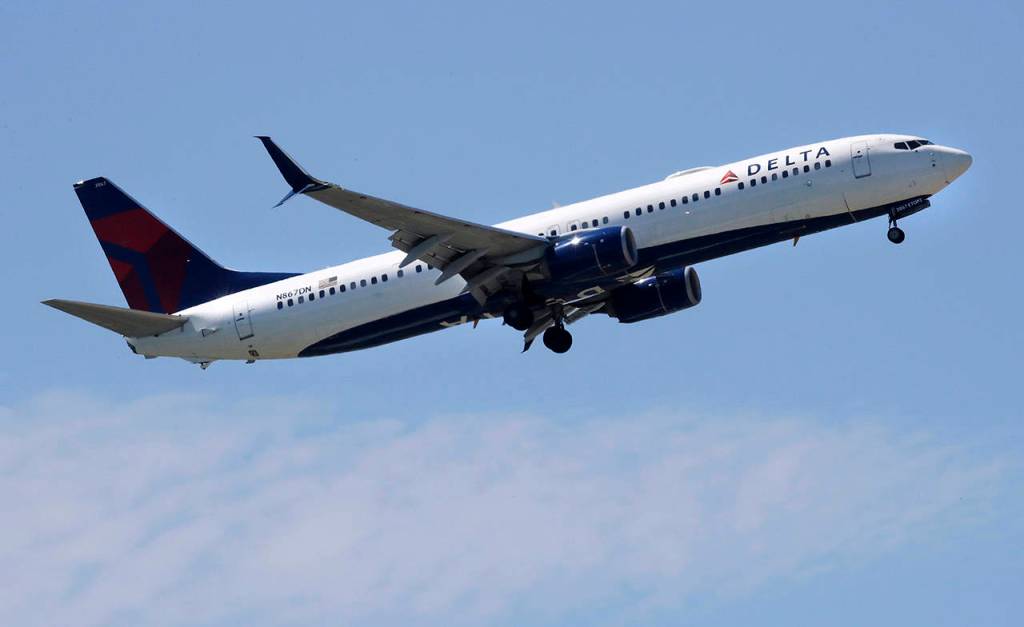 In this 2018 photo, a Delta Air Lines passenger jet plane, a Boeing 737-900 model, approaches Logan Airport in Boston. (AP Photo/Charles Krupa, File)