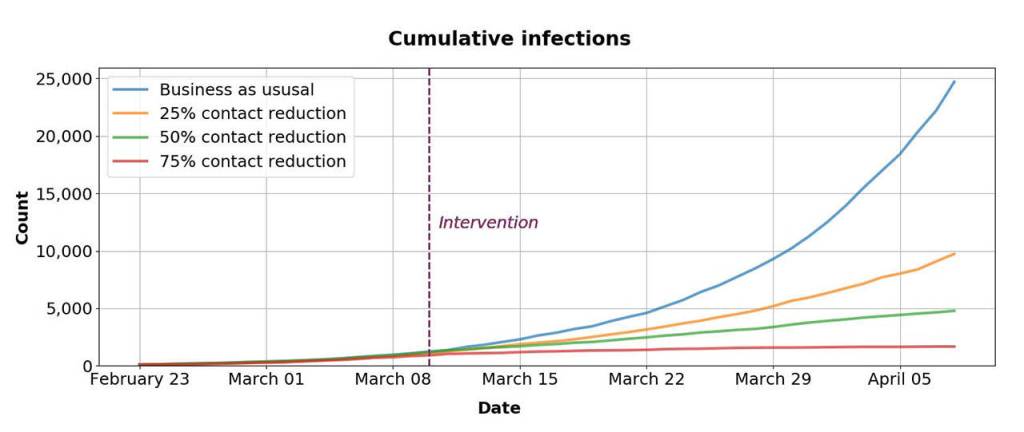 At those rates, the number of infected people in the two counties could grow anywhere from 35,200 to 140,800 in 35 days.