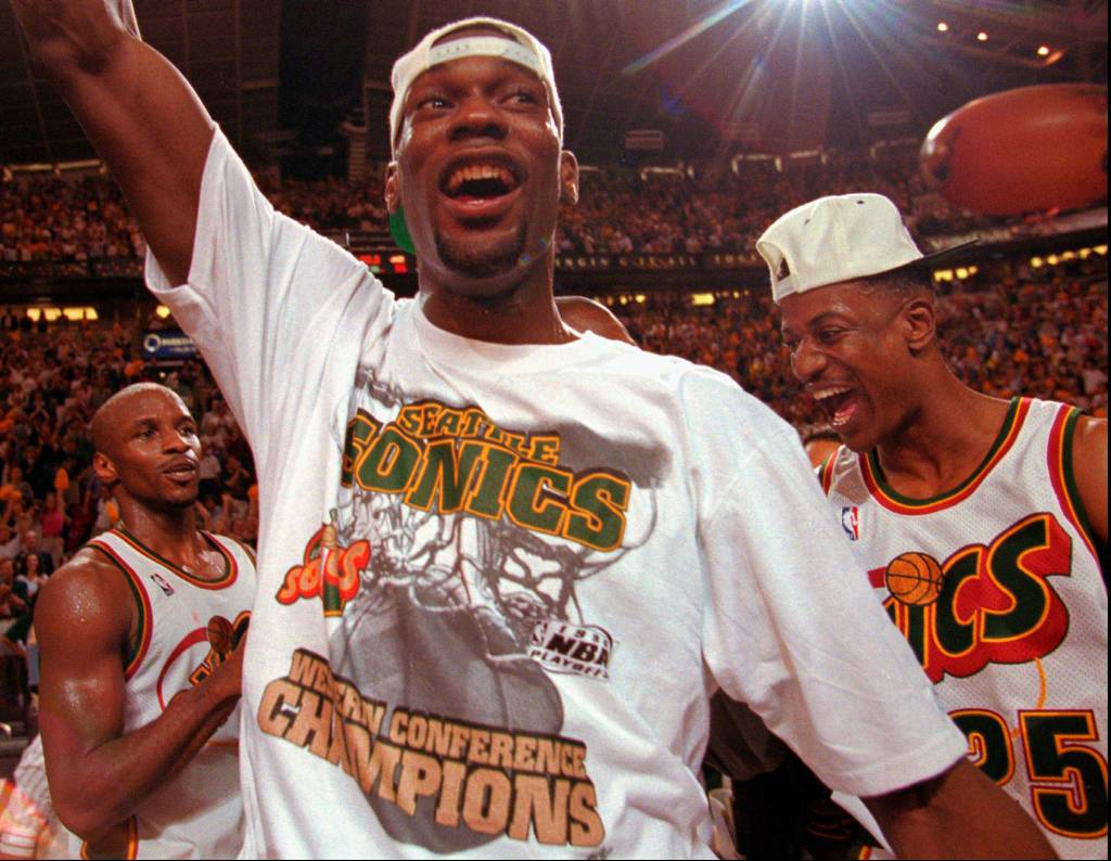 After being upset in the first round of the playoffs in back-to-back seasons, Seattle finally did it. The SuperSonics capped a back-and-forth playoff series with the John Stockton- and Karl Malone-led Utah Jazz with a classic Game 7 clash at KeyArena that finally sent stars Gary Payton and Shawn Kemp and head coach George Karl to the NBA Finals after years of disappointment and coming up short despite being a top contender in the Western Conference. If only they had broken through a year or two sooner.