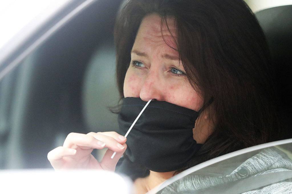Patients lined up in their cars at the district’s Women, Infants and Children office. Drivers were handed swabs and took their own nasal samples. Staff, wearing protective gowns, face guards, masks and gloves, took those samples and placed them in one of the Abbott machines.