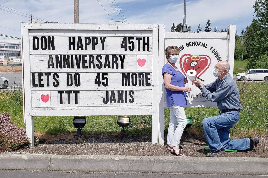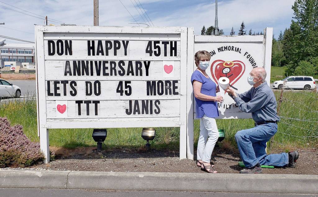 Janis Hathaway submitted this photo of a very special pandemic-era wedding anniversary in Stanwood.