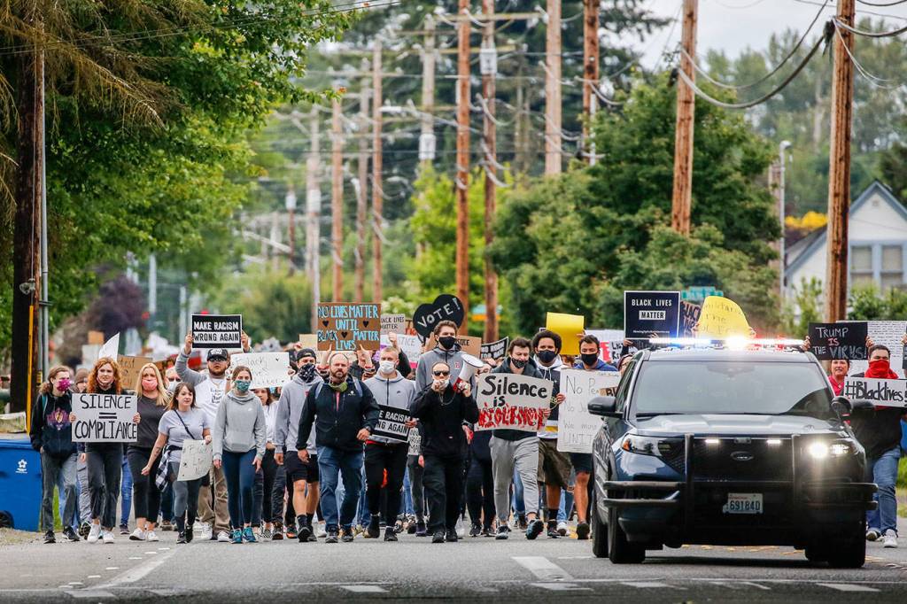 Protests following the death of Floyd, who was killed in police custody May 25 in Minneapolis, aren’t just concentrated in big cities like Seattle. Peaceful and passionate rallies have been hosted in Snohomish County communities like Monroe, Stanwood and Lake Stevens, where residents say they feel connected to those protesting across the globe.