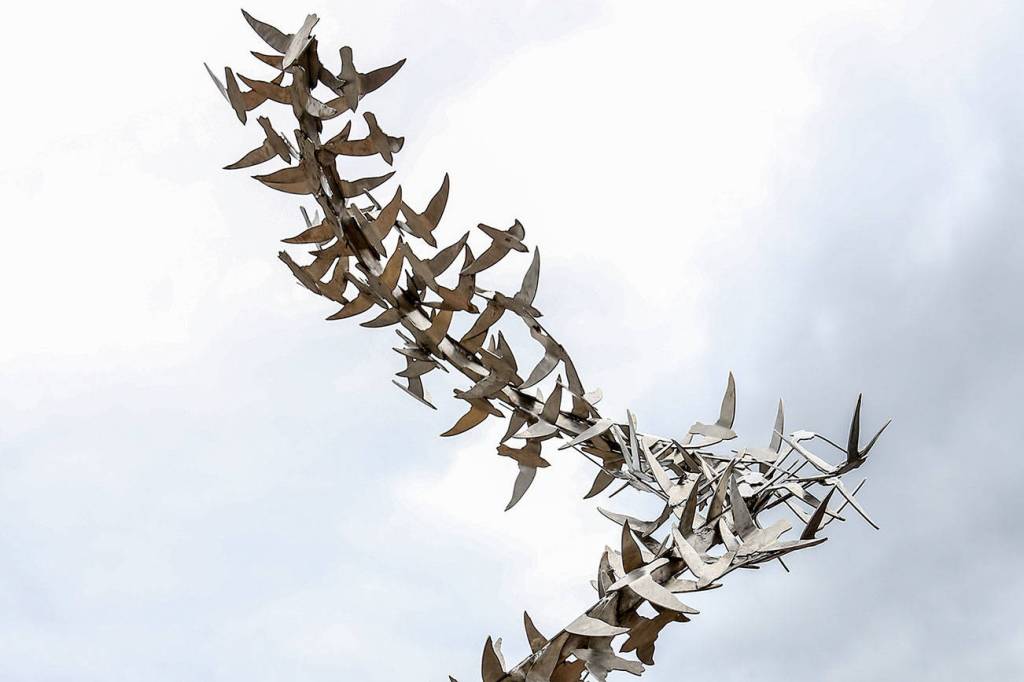 Pettelle’s original designs for the statue included 400 stainless-steel birds, but his budget couldn’t afford so many. City officials approved a $10,000 art grant to pay for the project.