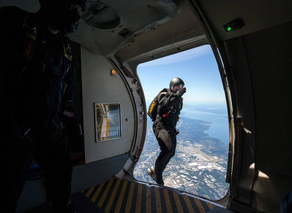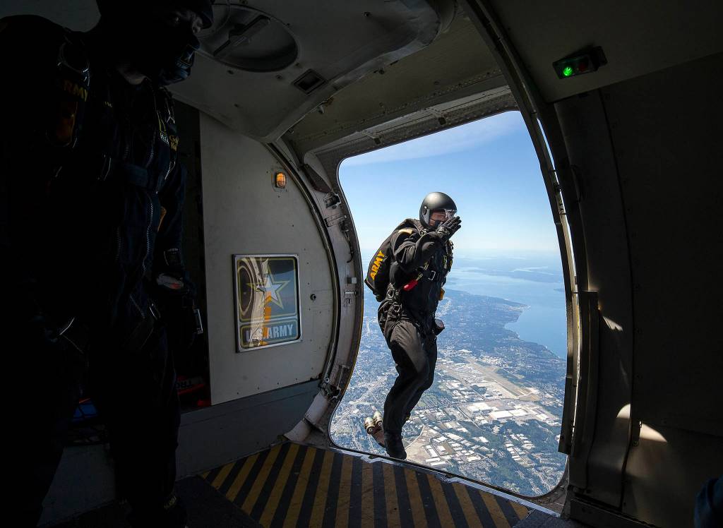 Sgt. 1st Class Ryan Ries, from Tacoma, was one of the Golden Knights who participated in Tuesday’s jump.