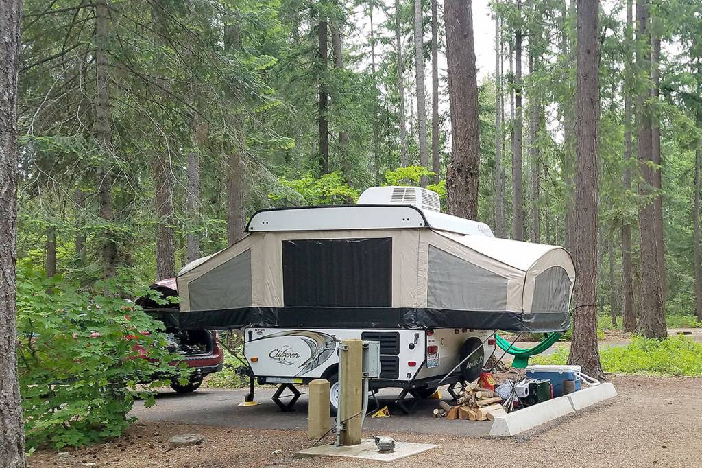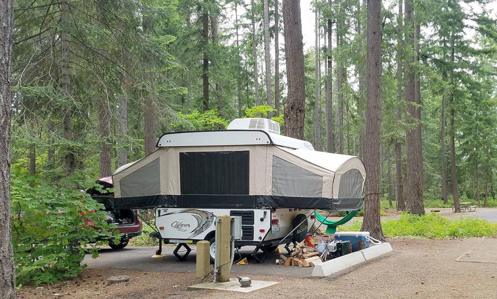 This late in the season, almost everything was booked, but I managed to secure us two nights at Lake Easton State Park, just over Snoqualmie Pass. We arrived mid-week, when I hoped it wouldn’t be too busy, and popped up our tent trailer a couple of days before the Fourth of July.