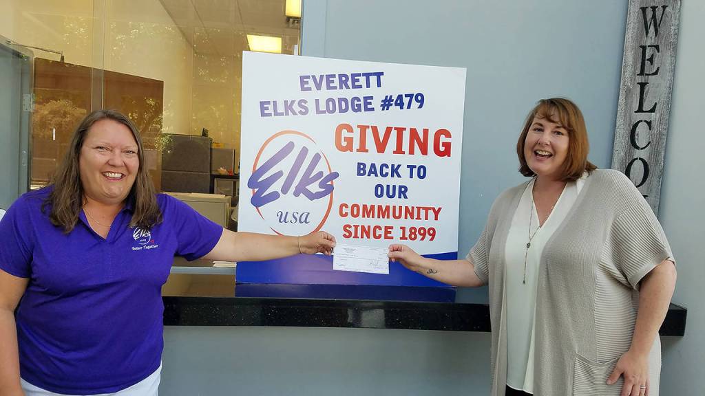 On July 10, Jocelyn Sievers-Bailey, exalted ruler of the Everett Elks, delivered a $2,000 check to the Volunteers of America to purchase food for the organization’s food bank.